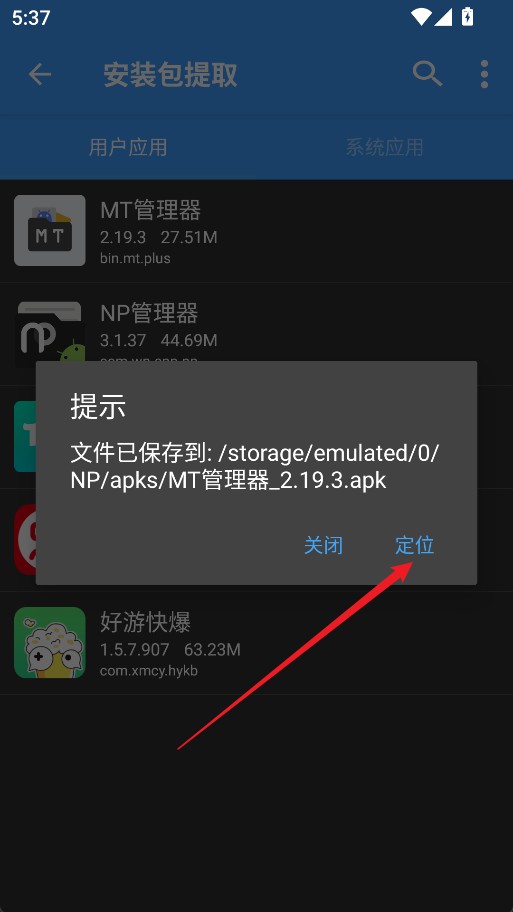 5、提取完成后,点击“定位前往APK目录”进入文件所在位置。