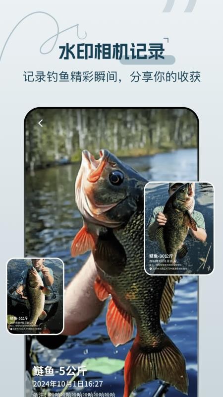 用户使用相机可以随时拍摄带有水印的照片,将更多的钓鱼瞬间拍摄下来;