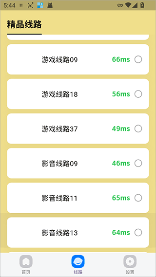 内置“精品线路”“游戏线路”“影音线路”等多类型节点,系统根据实时网络状况自动选择最优节点,用户也可手动切换以应对特殊网络环境。
