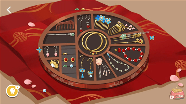 1、进玩家可以看到在关卡中有各种类型的首饰,玩家要将他们放在正确位置。