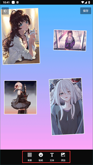 5.也可以单击背景,对背景进行更换、添加贴纸、文本等操作;