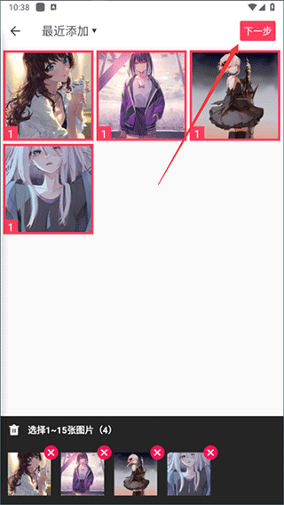 3.这里以【自由拼图】为例,选择需要拼图的图片,然后点击【下一步】;