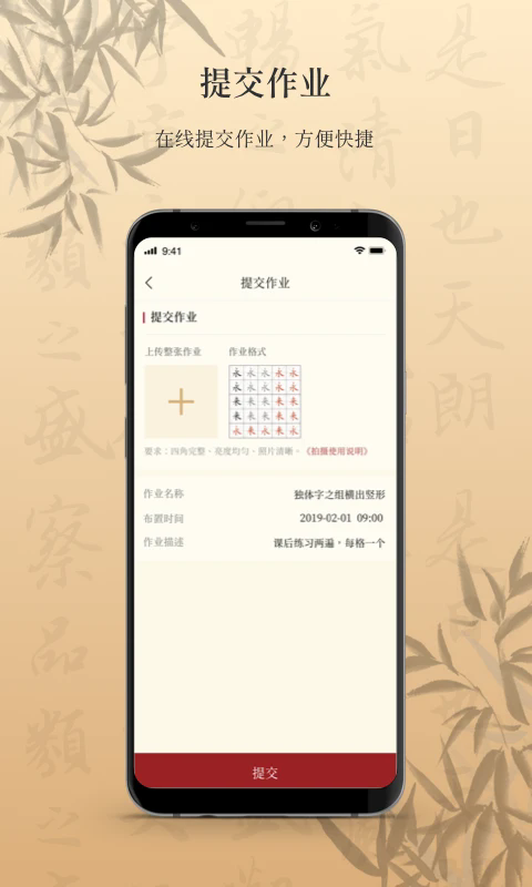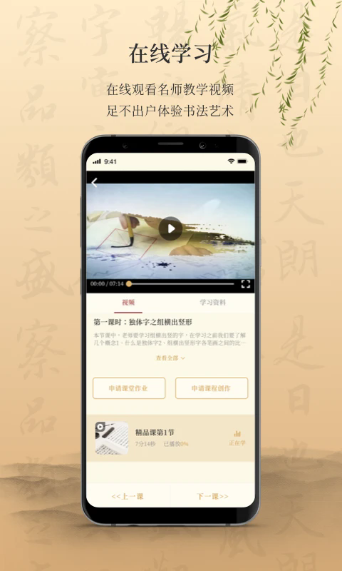 3、四步学习,引导学员通过听讲、练习、反馈、创作四步学习法,结合线上临摹与作业批改,快速掌握楷书结构特征及其书写要领,达成水平提升之学习目标。