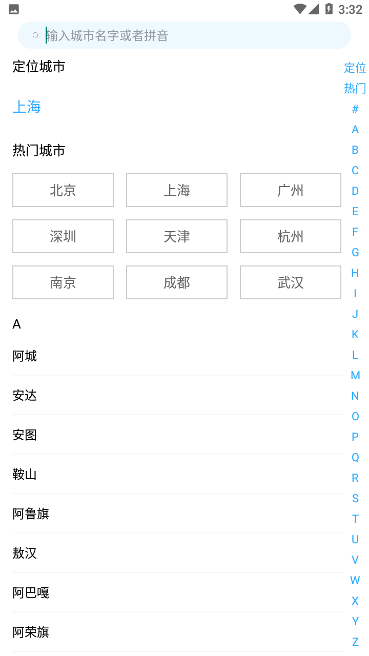 · 选择城市自动定位城市,任意添加各地城市查看天气