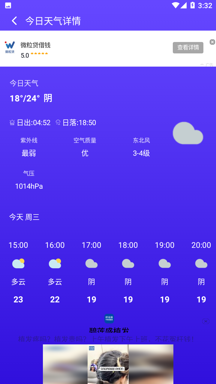 · 每天日出日落、气压、湿度、降雨概率、能见度、风力等户外数据,让您出行无忧