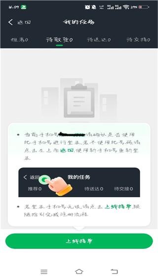 2、随后会进入我的任务页面,确认手机号码是否正确,确认无误点击上线接单