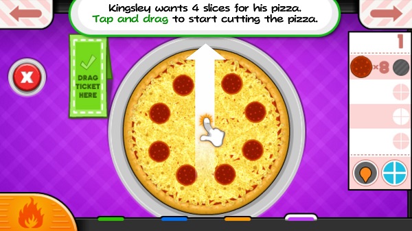 玩家须将从烤箱中取出的比萨饼切成客户的规格。