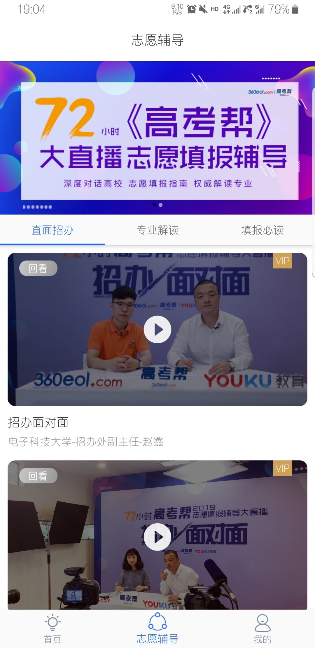 4、点击志愿辅导,可以选择直面招办、专业解读、填报必读