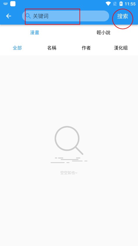 5、在搜索页面,输入关键词即可查找。