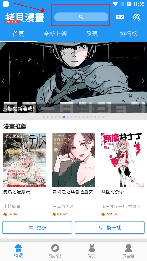 4、进入app之后,如果需要找需要的漫画资源,点击上方的搜索框;
