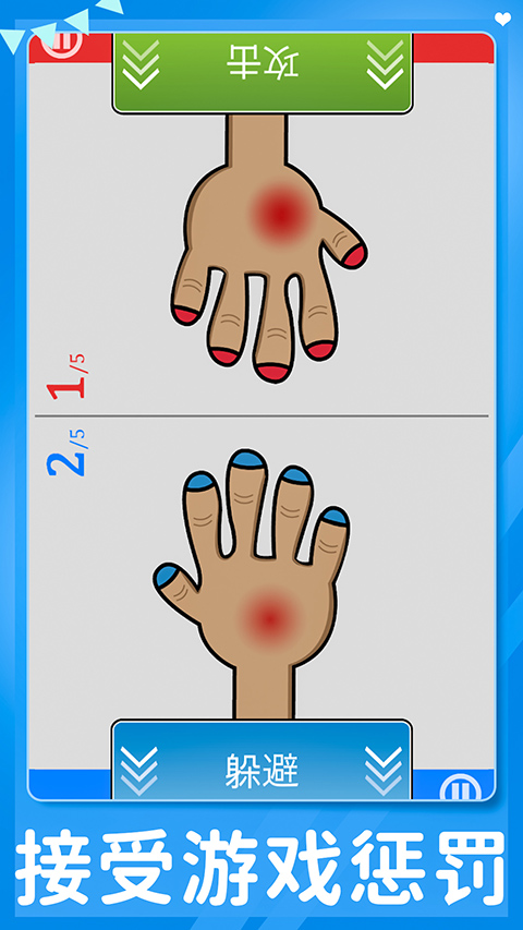 5、进入到游戏之后,按住并移动你的手指来控制角色,避免致命的尖刺,先用掉五条命的人失败,失败的人要接受随机的惩罚。