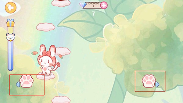 4、就可以和猫咪一起玩游戏,左右点击猫爪帮助猫咪爬上最高层;