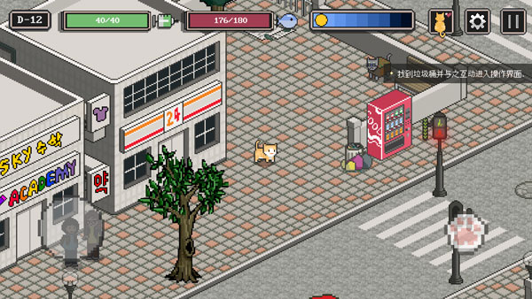 流浪猫的故事中文版是一款像素休闲类手游,在游戏中,玩家将扮演课的猫咪,通过模仿人类的动作获取人类的好感,从而获取食物,也可以通过捕捉老鼠和垃圾箱寻找食物。除此之外,我们还需要与周围的动物打好关系,他们会给你有关猫妈妈的线索,玩家需要不断了解线索,才能最终找到猫妈妈。