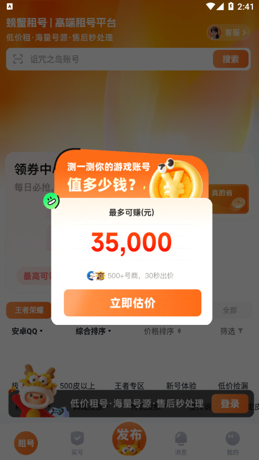 螃蟹租号是由海南觅睿科技有限公司退出的一款二手游戏账号交易平台,平台运营多年,安全性极高。专注于为用户提供游戏账号的租用、购买及出售的服务。平台涉及的游戏非常的多,市面上的热门手游和端游的账号在这里都是可以找到的。想退游的玩家也可以在平台上出售自己的账号,收益极高。实惠的租赁费用以及可靠的客户支持,在游戏玩家中建立了良好的口碑。