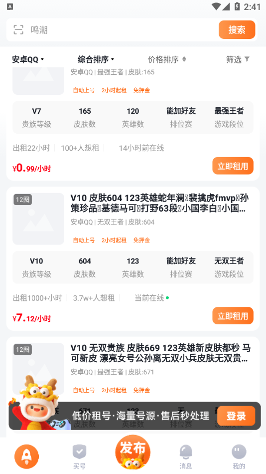 2、在这里选择你需要租赁的游戏账号