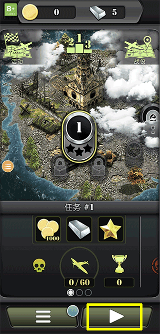 1、进入致命空袭2后,找到并点击黄色方框内的按键;