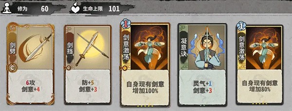 - 修仙之路上,机缘也是实力的一环。每次战斗后,有极小的概率遇到机缘牌。