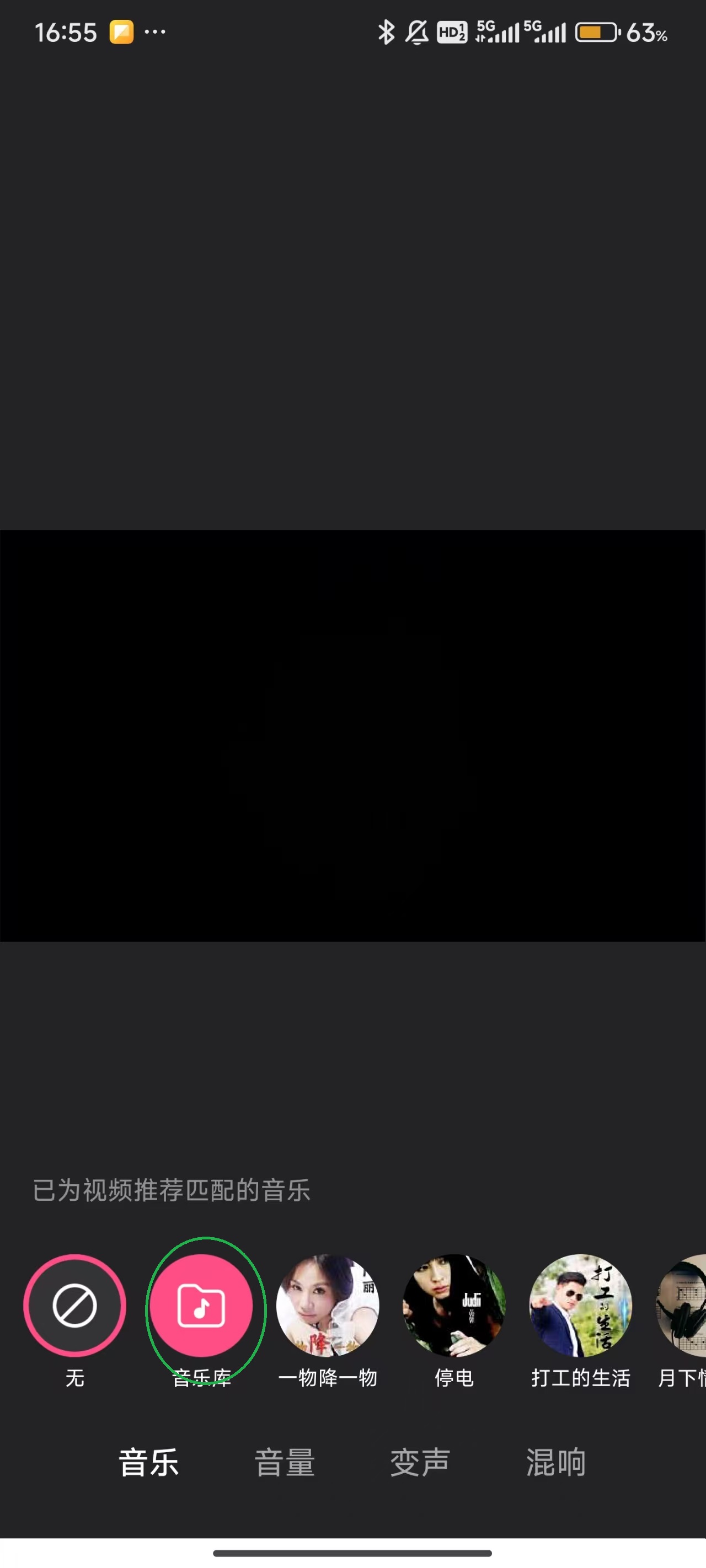 8、可以在下方自由选择热门音乐,或者点击屏幕右上角的“搜索框”来选择背景音乐。