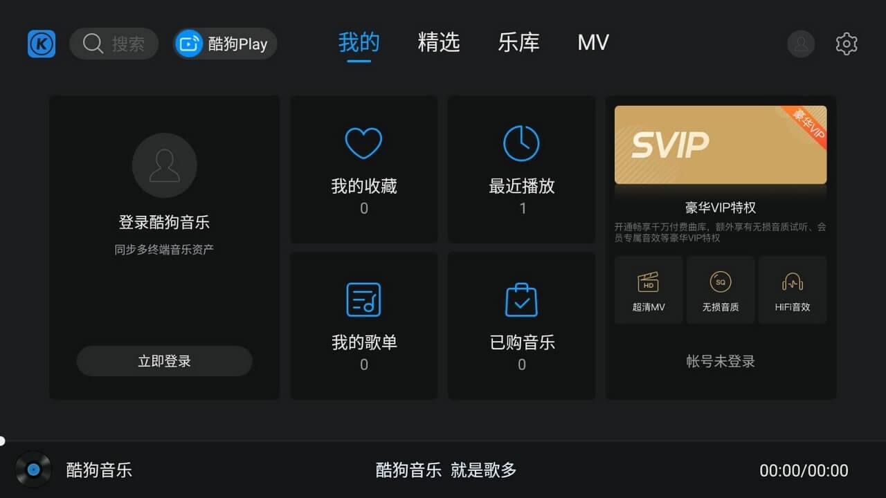 酷狗音乐TV版是由广州酷狗计算机科技有限公司专为安卓智能电视打造的版本,让用户在电视上也可以畅快听歌。该版本对大屏设备优化了界面和操作功能,让电视使用起来非常的方便。TV版的音乐和手机版的都是一样的,海量音乐资源免费畅听。除了日常的音乐播放,tv版还支持4K超清MV在线播放哦,让你享受大屏看mv的刺激。