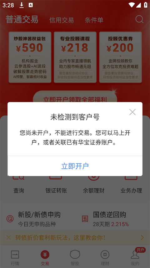 2、没有开户的用户,需要开户后才能进行查询