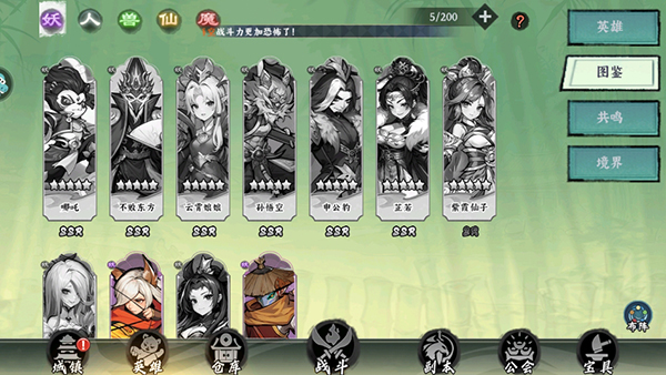 1、里面的英雄分为妖、人、兽、仙、魔每个种族都有各自的特殊属性和特殊技能,合理的搭配不同的英雄,在应对敌方不同阵容的时候,能够发挥出更多的优势。