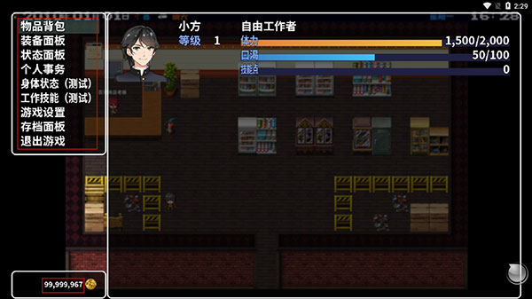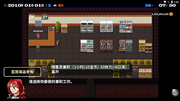 你可以在游戏中选择不同的职业进行谋生并攒钱,在未来的版本中,如果不喜欢打工兼职或去其他公司上班,你还能自己创业,甚至自己在家当个主播或游戏制作人。每次开始新游戏,你都可以根据有限条件换一种思路,甚至能改变人生翻身做土豪。