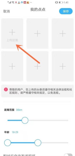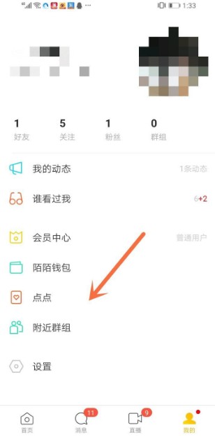 在个人主页里找到点点的位置,这是一个类似探探的玩法,互相匹配才能聊天。我们点击进去。