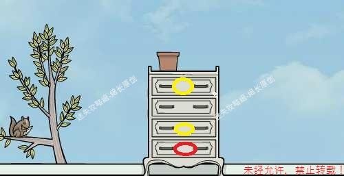 7、抽屉柜的场景,黄框处放大后点击所有的没有阴影的突起物,可以得到一个贝壳。红框水池里也有一个贝壳。7