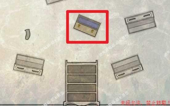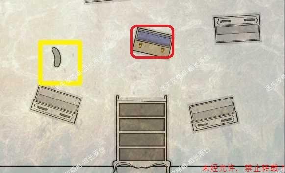 27、抽屉柜中,两个黄圈的抽屉是提示,一个红圈的抽屉里有一个砝码。27