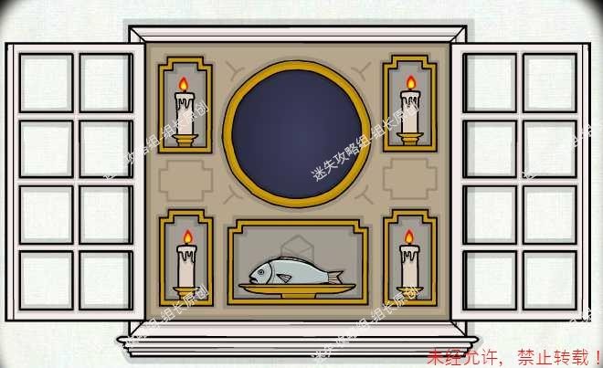 4、去到窗这里,对窗里的油画使用小刀后就能全部撕掉。就能看到传送门入口。放上所有蜡烛并点亮,传送门就会打开,同时放上鱼,打通前往鱼的自我的通道。4、1