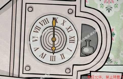 4、前往立钟处,输入二点三刻的时间。得到瓶子。顺便边上红框处得到一只铅笔。4、1