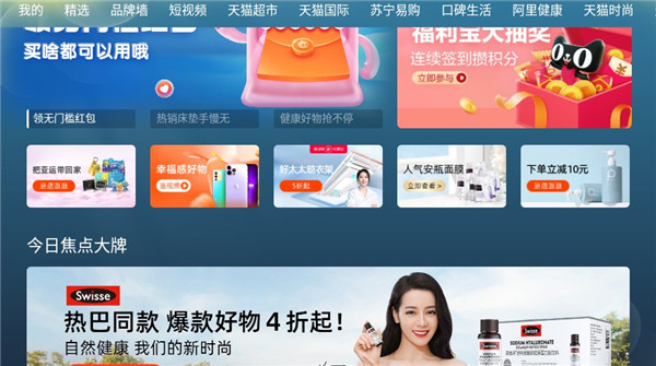 2、全民红包免领,不管是谁只用这个智慧屏购物应用就能在首页之中免费领取现金红包。