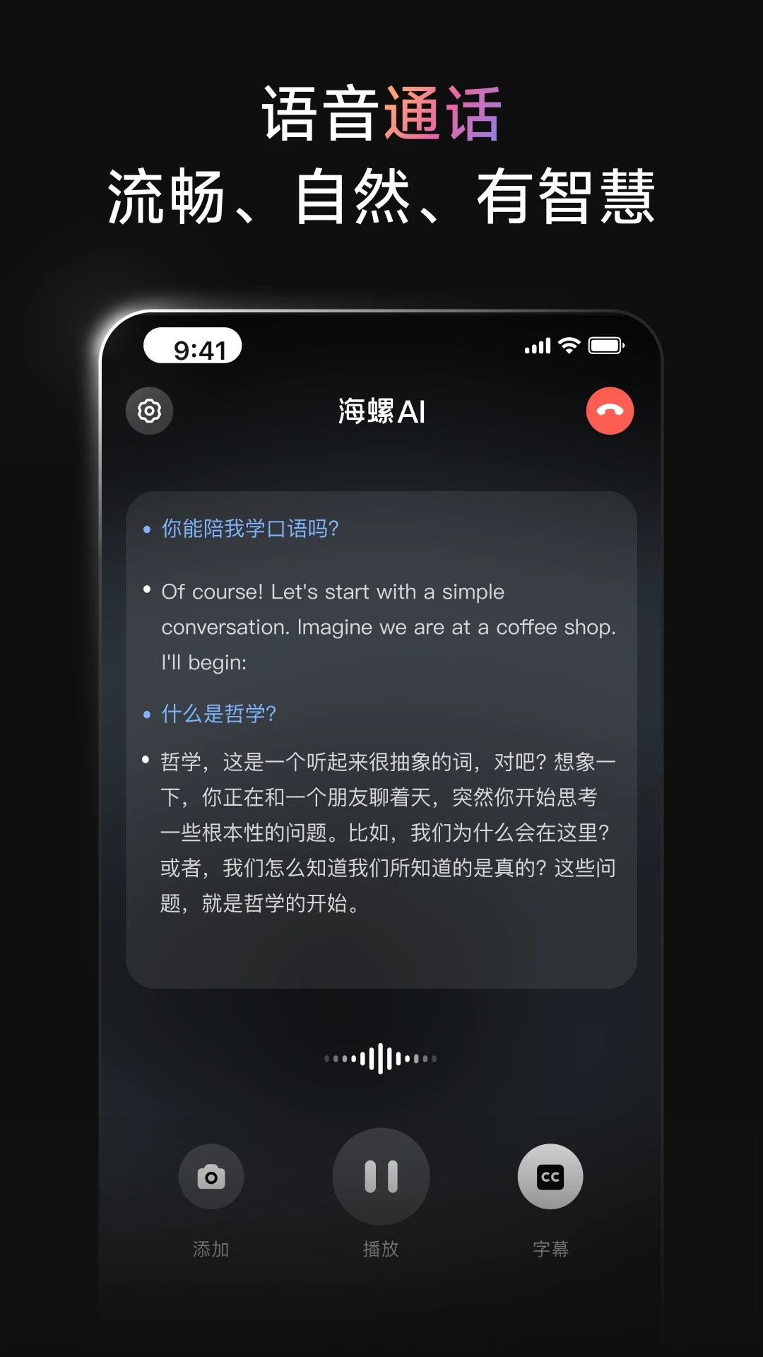 - 语音通话,打电话小海螺吧!像朋友一样轻松自然聊天,解答问题,练习口语。