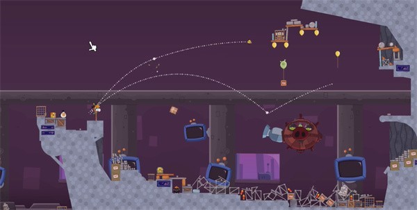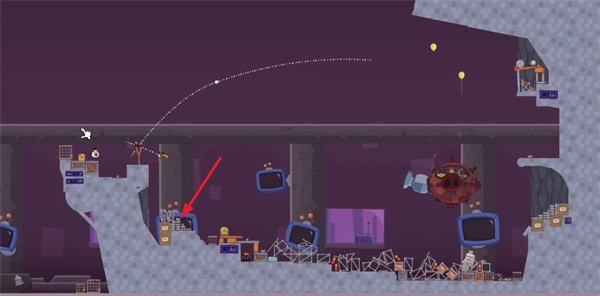 2、一开始是无法攻击到boss,这个boss会后退,利用弹射原理,摧毁前方的建筑物。