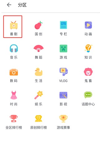 里面为用户提供了番剧、国创、音乐、舞蹈等等频道,点击番剧;