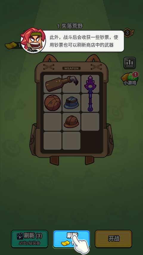 注:刷新时,商店中已有的装备也会被刷新掉,合理分配钞票的使用吧!