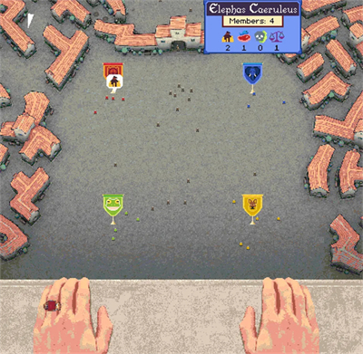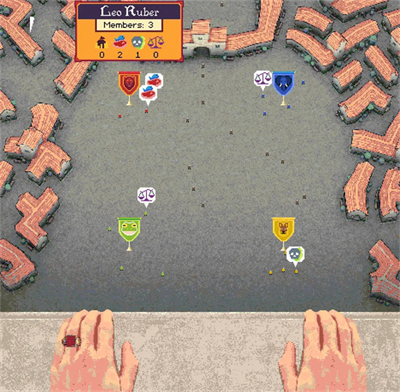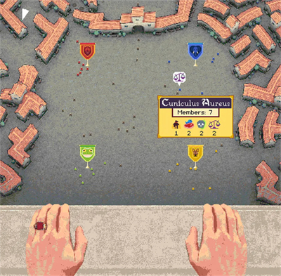 进入游戏你可以看到游戏中的每个阵营,分别有四个,你需要平衡这些势力,一旦它们达到了30人你就会被推翻。