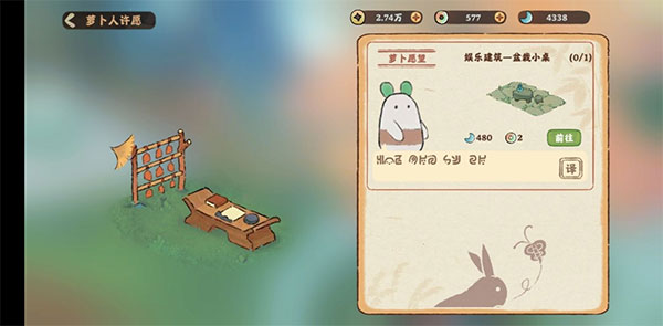 ①装饰建筑,包括小萝卜愿望建筑和创物池抽取(注:建筑要摆放之后才会增加舒适度)。