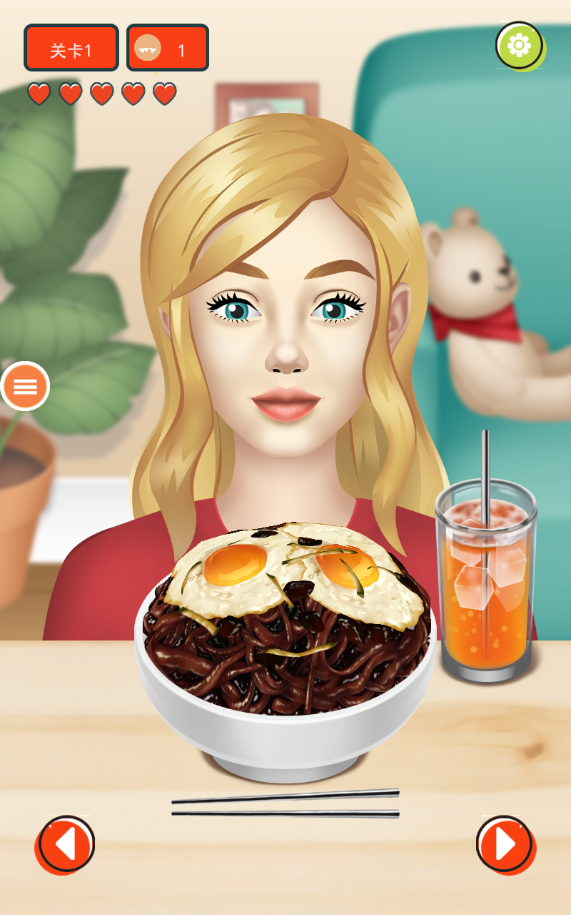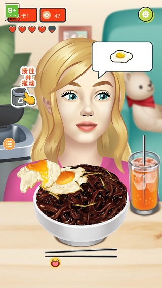 2、夹起食物,送到女主播的口中,如果当中美食不慎掉落需要拖动的垃圾箱扔掉。