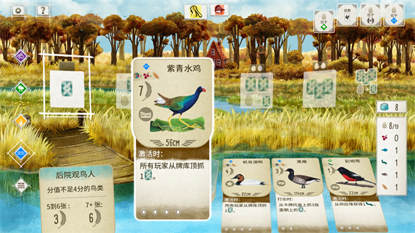 3、每当新的鸟类加入自然保护区,都会提升保护区在某个方面的能力,诸如鸟类产蛋、抽取新的鸟类卡牌或者收集食物。