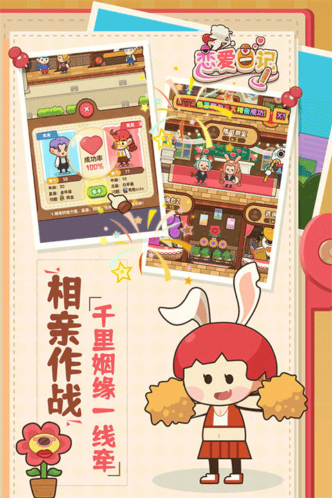 恋爱日记是一款以模拟爱情为主题的经营手游,为了大力发展村里的婚恋事业,拯救魔幻村的人口大危机,在游戏中需要招聘员工,服务每一位客户,将店铺做大做强,游戏整体风格偏休闲,画风弥漫着浪漫气息,适合女性玩家游玩。感兴趣的快来下载试试吧~