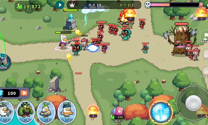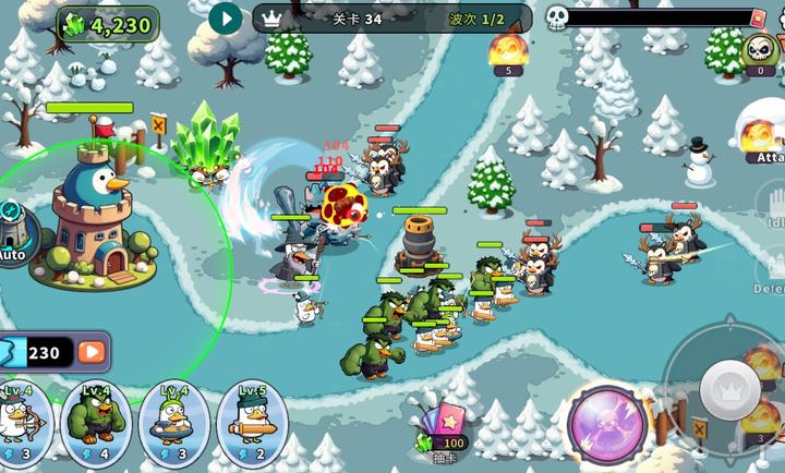 - 收集行动力,生产鸭子士兵来击败怪物!