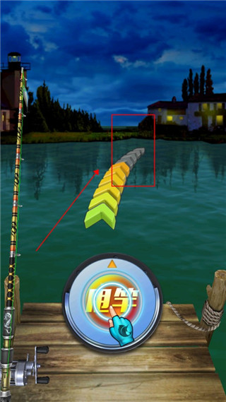 3、长按下方按钮崩紧鱼线,然后松开,以此往复积攒怒气