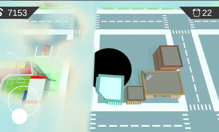 3、在一个充满活力的城市中,我们将操控一个黑洞,吞噬路上的所有物体使其不断壮大。