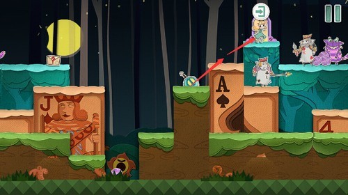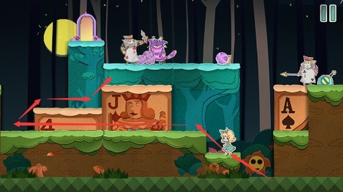2、扑克兵会被球砸晕,趁着球的间隙快速移动到右上角的门里。