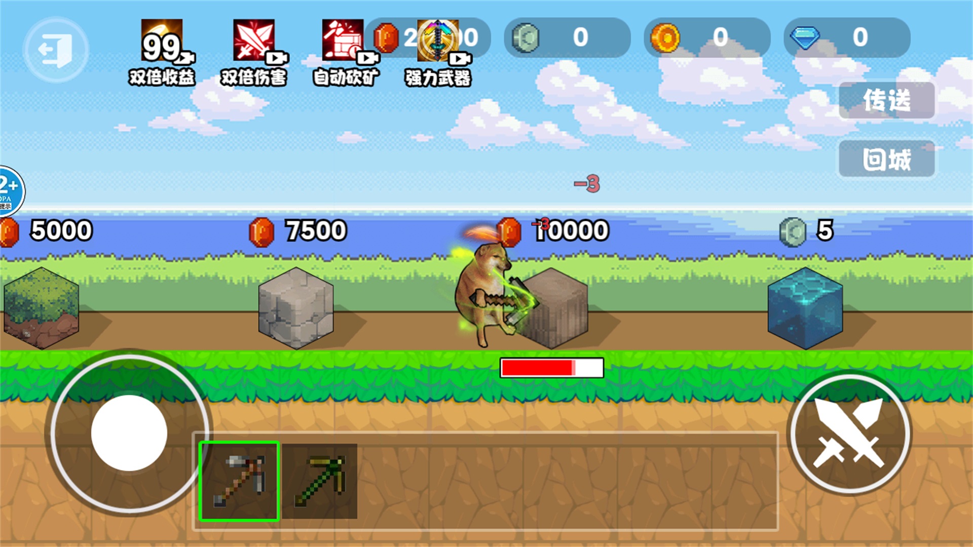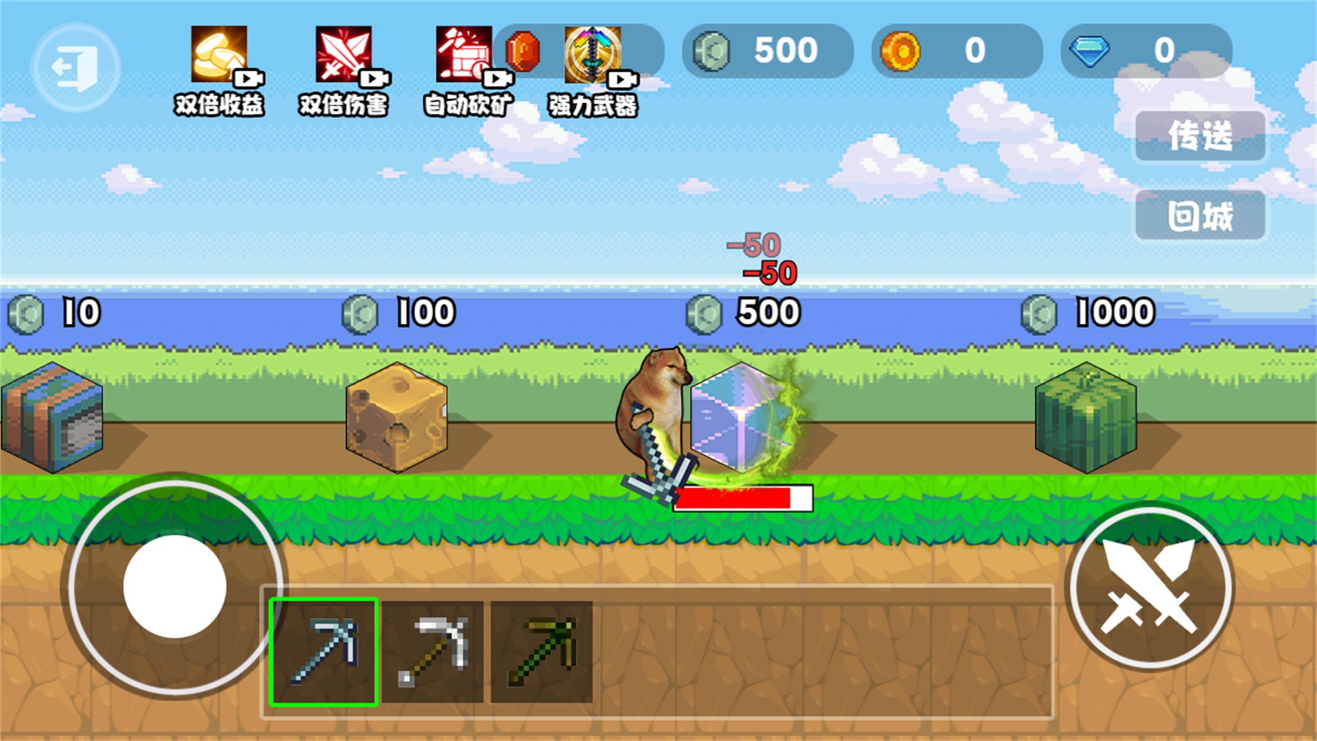 4、你需要购买升级稿子,伤害上来了就能更快的挖开方块矿石,获得奖励。