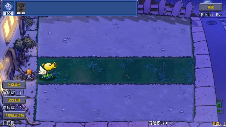 9.将上方卡槽中的植物拖放到草地上来抵御僵尸进攻