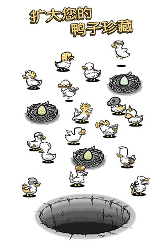 怪鸭世界是一款以养成各类鸭子为目标打造的休闲益智类模拟经营小游戏。游戏以经典的黑白风格元素设计为主打,有着清爽简约的游戏界面、丰富多样的场景动画、以及有趣的技能特效效果。同时游戏中丰富的鸭鸭种类丰富并且形象诙谐,呆萌有趣,且每只鸭子都有不同的技能。在这里你不但可以通过不断的孵化基因变异的鸭子来进行培养和成长,并将其放进神秘洞中触发奇特的惊喜,获取更多不同的鸭子奖励,集齐鸭鸭图鉴满足你浓厚的收藏欲。