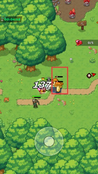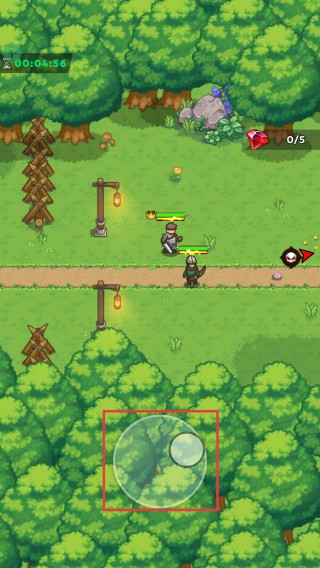 2、通过屏幕下方的【圆形摇杆】控制角色移动。