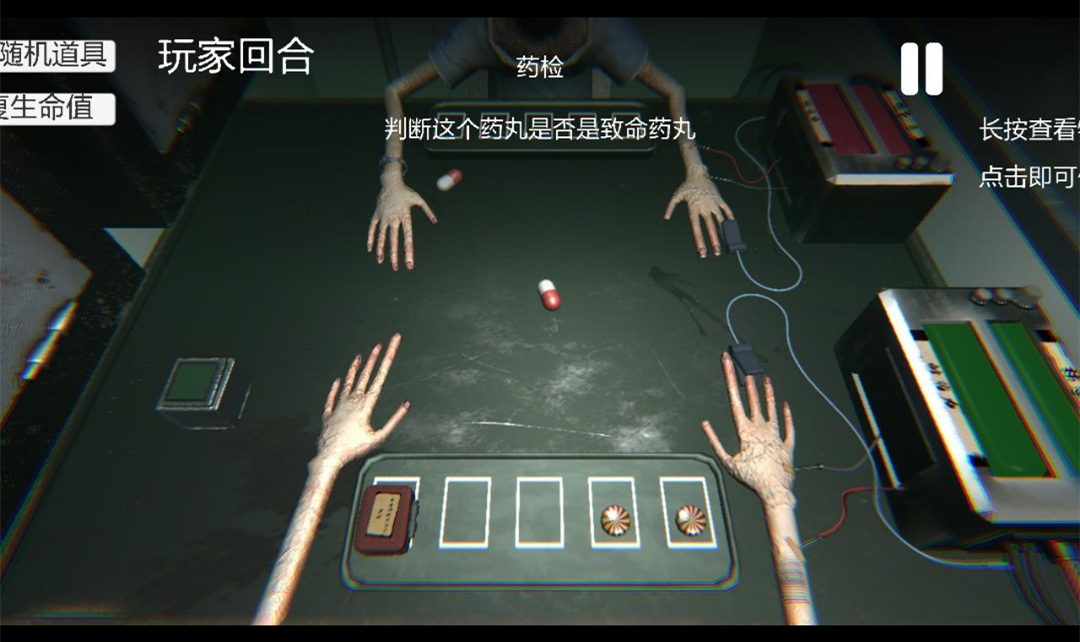 这是一款玩药丸轮盘赌,一共两名测试对象参与,通过不断吃药,最终只有一人幸存。